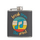 Un matraz con una nota musical octava, con la frase "Rompe de la hierba" centrada alrededor de la imagen. El diseño sugiere una escapada pacífica del estrés diario a través del poder de la música y el ritmo.
