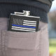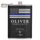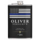 Un matraz negro con temática de aniversario de un personalizado de policía hecho a la medida de las fuerzas del orden. La delgada línea azul y la bandera de la policía es representativa de la policía y el personal norteamericanos.