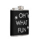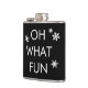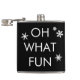 Este matraz blanco y negro está decorado con las palabras "Oh What Fun" y copos de nieve blancos, lo que lo convierte en un regalo divertido, festivo y masculino durante las vacaciones.
