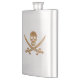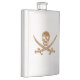 El oro brillante coloreó el cráneo y cruzó las espadas en negro. Para el pirata discriminatorio.