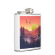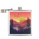 Un paisaje abstracto de una escena montañosa con un amanecer y árboles en llamativos tonos rojos y rojos.