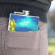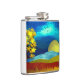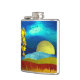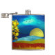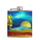 Un hermoso diseño de paisaje abstracto con un cielo único que se asemeja a las olas en líquido y una luna, montañas y un árbol dorado.