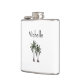 Matraz tropical costero, con un diseño sencillo de palmeras. La escritura elegante en negro se puede personalizar con tu propio texto. Un accesorio inspirado en la playa para tu bebida caliente favorita en el viaje.