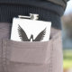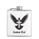 Silhouette de palo con alas abiertas y una cruz. Texto personalizado.