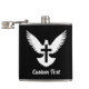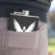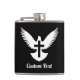 Silhouette de palo con alas abiertas y una cruz. Texto personalizado.