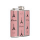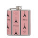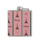 Ilustracion de París con Torre Eiffel y decoración del corazón y diseño de texto de París sobre fondo rayado negro, blanco y rosa