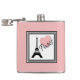 Ilustracion de París con Torre Eiffel y decoración cardíaca en cuadrados blancos y negros sobre fondo rosa