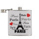 Ilustracion de diseño de textos en París con la Torre Eiffel y decoración de corazones rojos. Es posible cambiar el color de fondo y añadir uno diferente al diseño con su elección.