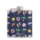 Matraz de cadera con temática azul oscuro de vacaciones con colorido collage de playa ilustrado.