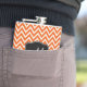 Petaca Patrón de cheurón naranja y blanco con monograma