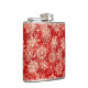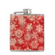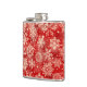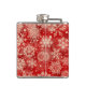 Patrón de copos de nieve. Patrón sin foco con esponjosos copos de nieve blancos sobre un fondo rojo.
