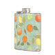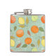 Patrón de fruta con limones, naranjas, lima y pomelo. Frutos cítricos brillantes sobre un fondo verde claro con salpicaduras multicolores de pintura.