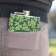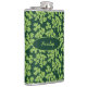 Estrellas de perejil con hojas verdes. Patrón sin foco. Color de fondo personalizado. Texto personalizado.
