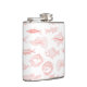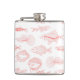 Patrón vectorial dibujado a mano con varios peces en color de coral vivo y fondo blanco.