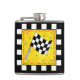Muestra tu amor por las carreras (nascar, suciedad, arrastrar, moto, etc.) con tu matraz con una bandera de cuadros negros y blancos y personalizado con tu nombre en la parte posterior. Ideal para llevar tu bebida favorita a un fiesta de carreras o para viajar al final. Personalizable para que puedas personalizar tu nombre, ubicación, negocio o controlador favorito o decir felicitaciones debajo de la bandera o debajo de todo el diseño - es fácil de personalizar agregar una palabra o fecha para un regalo a un conductor. Una bandera de color negro y blanco a cuadros se centra en un fondo amarillo texturado. El arte está rodeado por un borde blanco y negro a cuadros. Es un diseño artístico original de Phyllis Dobbs.