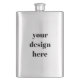 Estilo: Classic Flask Haz que viajar sea divertido con este pesado matraz de personalizable. Fabricada con acero inoxidable 100%, podrás personalizar este clásico accesorio con tus fotos y diseños para crear una petaca diseñada para encajar en el bolsillo de tu pantalón y con tu estilo. Es el regalo ideal para cualquier ocasión, como bodas, cumpleaños y eventos especiales. 8 oz de flexión de acero inoxidable Dimensiones: Diseños de 4,8" x 4" x 1" impresos directamente en la superficie frontal del matraz. Colores claros no recomendados Lavado de mano con agua caliente Tapa extraíble