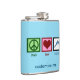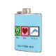 Un signo de paz, corazón y un delfín de bonito sobre un matraz azul personalizado. Me encantan los animales marinos en el océano.