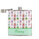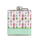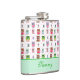 El matraz de una dama divertida, con adorables gráficos personalizados de coloridos lechuzas rosadas, verdes y marrones y puntos de polka, sobre un fondo blanco. Una banda verde menta, por la parte inferior, tiene texto verde listo para personalizar. Buena idea de regalo.