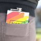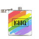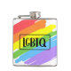 Esta obra de arte presenta un arcoiris colorido con las letras LGBTQ.