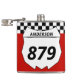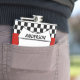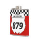 Portón trasero con estilo en su próxima carrera de motocross con su propio matraz personalizado. Este matraz tiene un número de placa blanco que está listo para ser personalizado con su nombre y número de bicicleta. La placa numérica se coloca sobre un fondo rojo con un borde de bandera a cuadros en blanco y negro.