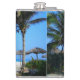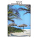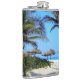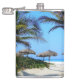 Vistas al océano con palmeras y playa de arena. Paraguas coloridos en la playa, ideales para relajarse bajo el sol.