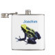 Fotografía de una rana de dardo con veneno amarillo y azul. Personalizar añadiendo texto y/o cambiando el color de fondo para que se adapte a ti mismo!