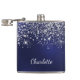 Petaca Polvo de purpurina de plata azul nombre guión mono