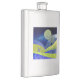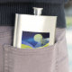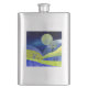 Un paisaje abstracto que representa colinas onduladas con un florido árbol primaveral y plantas y una luna y estrellas en tonos azules, cian, amarillo y rosa.