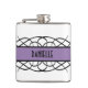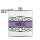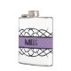 Elegante y distinguido Deco Flourish Wrapped Flask con un elegante borde de color morado giratorio. Fácil de personalizar, simplemente agregue texto personalizado en los campos de texto proporcionados. Cambie el color de fondo a cualquier color que desee. Haga clic en "Personalizar" para encontrar más opciones de personalización.