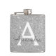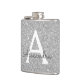 Lujoso Purpurina de Faux Plata y Sparkle Elegant Monogram Flask. Esta máscara se puede personalizar para incluir su nombre inicial y su nombre. El Silver Flask es perfecto para celebrar un cumpleaños o una fiesta de soltera.