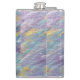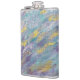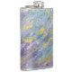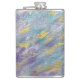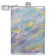 Quiet Reign is an abstract piece defined by its soothing, cool color palette and energetic brushwork. The painting features diagonal sweeps of soft lavender, tranquil aqua, and deep violet, punctuated by bold, shimmering metallic gold accents. The overall effect is one of serene motion, like a gentle rain shower illuminated by a hidden golden light. This artwork adds a touch of modern, peaceful sophistication to any space or product.