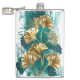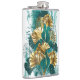Rama con joyas, oro y hojas verdes de Ginko biloba en luz, fondo verde pintado. Ginko biloba