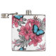 Ramo de flores tropicales, hojas de palma y mariposas dibujado a mano