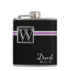 Matraz negro con color de acento y monograma cambiables. Personalice el monograma y el texto según sea necesario y cambie el color de fondo para complementar a su boda.