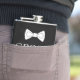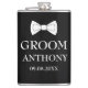 Frasco de novio moderno, elegante y con estilo de caligrafía en blanco y negro. Perfecto para regalar en la boda. Puedes personalizarlo con tu nombre y fecha.