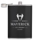 Esta elegante petaca para el séquito del novio en blanco y negro presenta un esmoquin clásico, corbata de lazo, los nombres de los miembros del séquito del novio, título y fecha escritos en una tipografía minimalista gris de moda. Simplemente agregue los nombres de los miembros del séquito del novio, título y fecha en la sección de personalización para crear su propia petaca para la fiesta de bodas. Aunque se muestra aquí como un regalo para el séquito del novio, personalice fácilmente la sección del título para el novio, el padrino, el padre del novio y el padre de la novia. Gran idea de regalo personalizado para su fiesta de bodas.