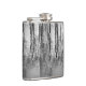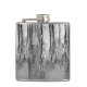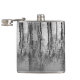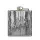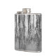 Este matraz de cadera de arte fino, negro, plateado, blanco y gris presenta reflejos de árbol que hacen un patrón abstracto brillante en el estanque.