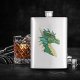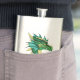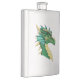 Perfil lateral de un dragón verde esmeralda en un fondo de menta
