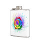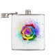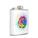Rosa grande y floreciente con pétalos de arco iris sobre fondo blanco, pintado con salpicaduras de pintura colorida y brillante. 3.ª