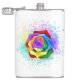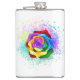 Rosa grande y floreciente con pétalos de arco iris sobre fondo blanco, pintado con salpicaduras de pintura colorida y brillante. 3.ª