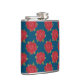 Una máscara de cadera romántica para el personalizar, con un patrón de rosas rojas en todo el mundo, en un fondo azul profundo que se puede cambiar fácilmente si se desea. Parte de la colección "Corazones y Rosas" de Posh & Painterly de Judy Adamson, este patrón puede ajustarse para que se ajuste a cualquier matraz de cadera.