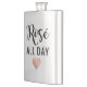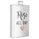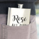 Elegante matraz de bebida "Rosé todo el día" en escritura negra moderna con corazón de oro rosa.