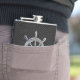 Un cromo náutico moderno de la plata del estilo como applique en una decoración negra mordaz de la impresión de la fibra de carbono para un regalo de encargo fino del frasco.