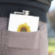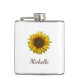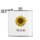 Boho floral personalized Sunflower flask, with customizable script typography. Enjoy this rustic accessory item for yourself or as a gift for someone special.
