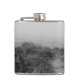 Pequeño camino que conduce a la playa en una densa niebla. Fotografía en blanco y negro.