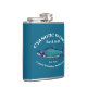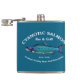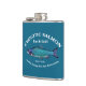 Un Sockeye Salmon de tono azul con texto que dice "Cyanotic Salmon Bar & Grill Kenai, Alaska" y "Combate al Descanso y la Relajación de la Pesca". La pesca del salmón es muy popular en Alaska. Imaginemos cientos de pescadores, hombro a hombro, alineando ambos bancos de un arroyo tratando de evitar cruzar líneas con todos los demás con la esperanza de aterrizar un gran salmón. Eso es pesca de combate. Después de un día de esto, tomamos algo de investigación y R en el mítico Salmón cianotico en Kenia. Cuentos de pesca contados ahí...algo cierto.