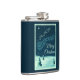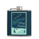 Un matraz con un ilustracion vintage de Santa en el trineo siendo jalado por sus renos. Las pequeñas estrellas rompen el cielo nocturno. La nieve cubría pinos en el suelo. Ambiente retro vintage.