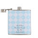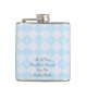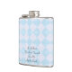 Este frasco del acero inoxidable se adorna con un modelo azul y blanco retro del control. El texto dice "si al principio usted no tenga éxito, no le da otra bebida…" Regalo de la diversión para cualquier ocasión. Fácil cambiar o suprimir el texto del ejemplo. Todos los derechos reservados © Alan 2013 y Marcia Socolik