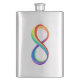 Símbolo claro de infinito de capas plásticas de colores saturados rojo, amarillo, verde, turquesa, azul y violeta sobre fondo blanco.