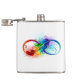 Símbolo de infinito dibujado artísticamente con una hermosa pluma arco iris sobre fondo blanco. Estilo tatuaje.
